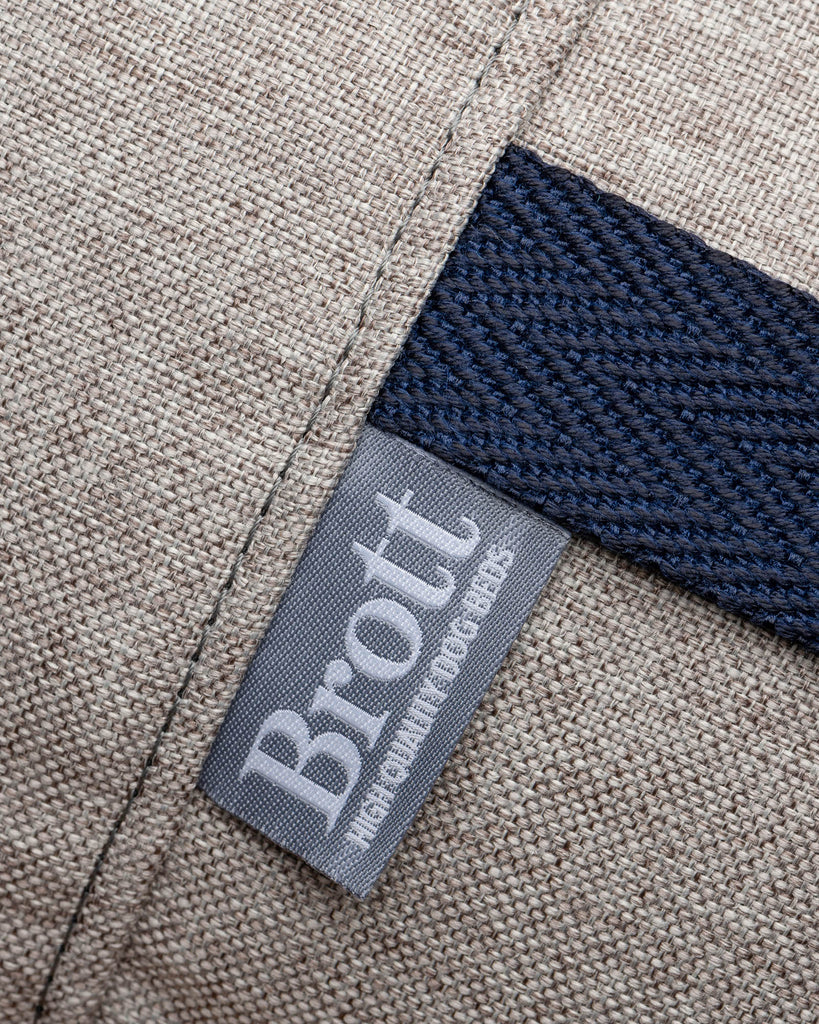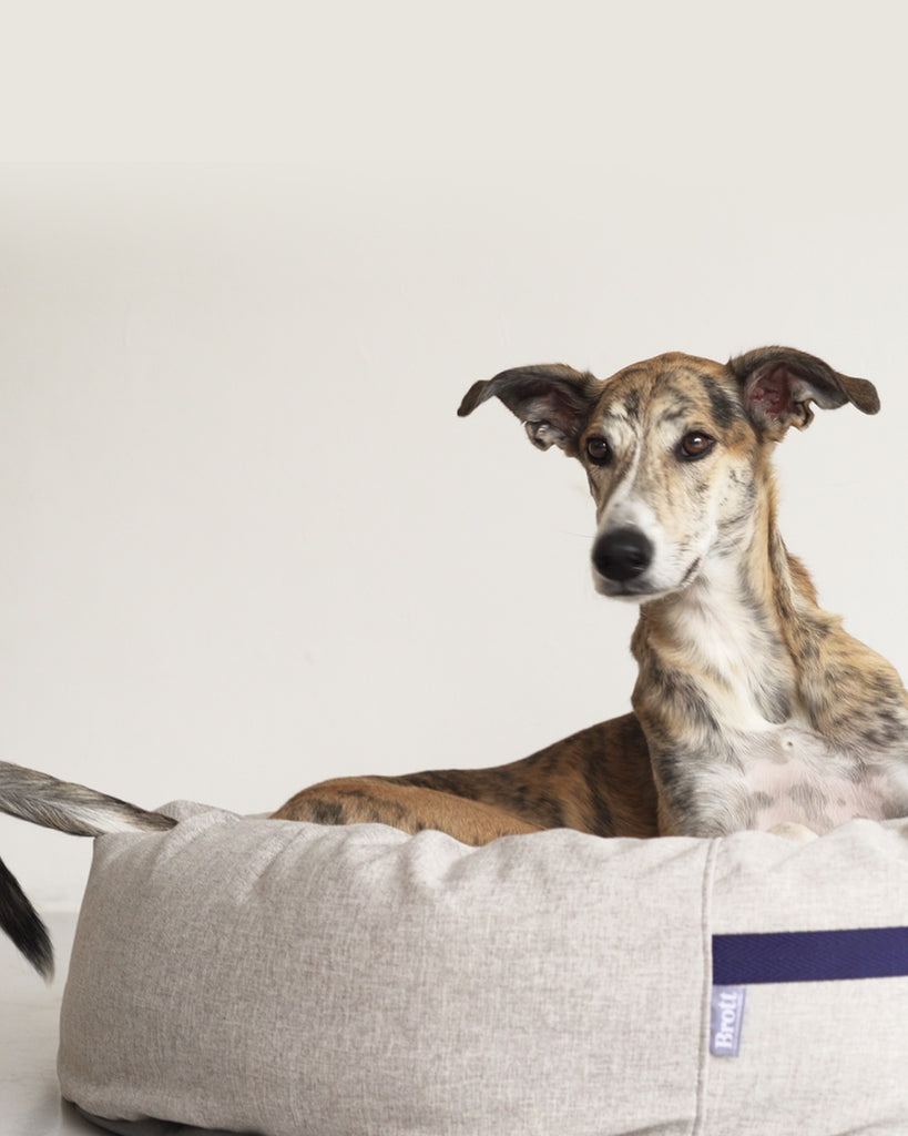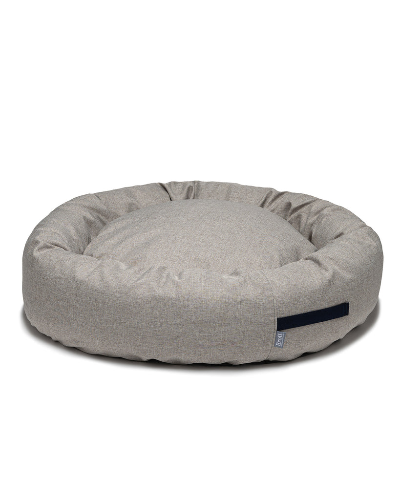 Our Brott dog bed is handmade in our own workshop from high strength materials. The outer fabric has a water-repellent treatment to help you remove stains quickly while being very durable. The filling is made of recycled fibre from plastic bottles. Thanks to its high resilience it will give you great comfort, as well as helping the environment.