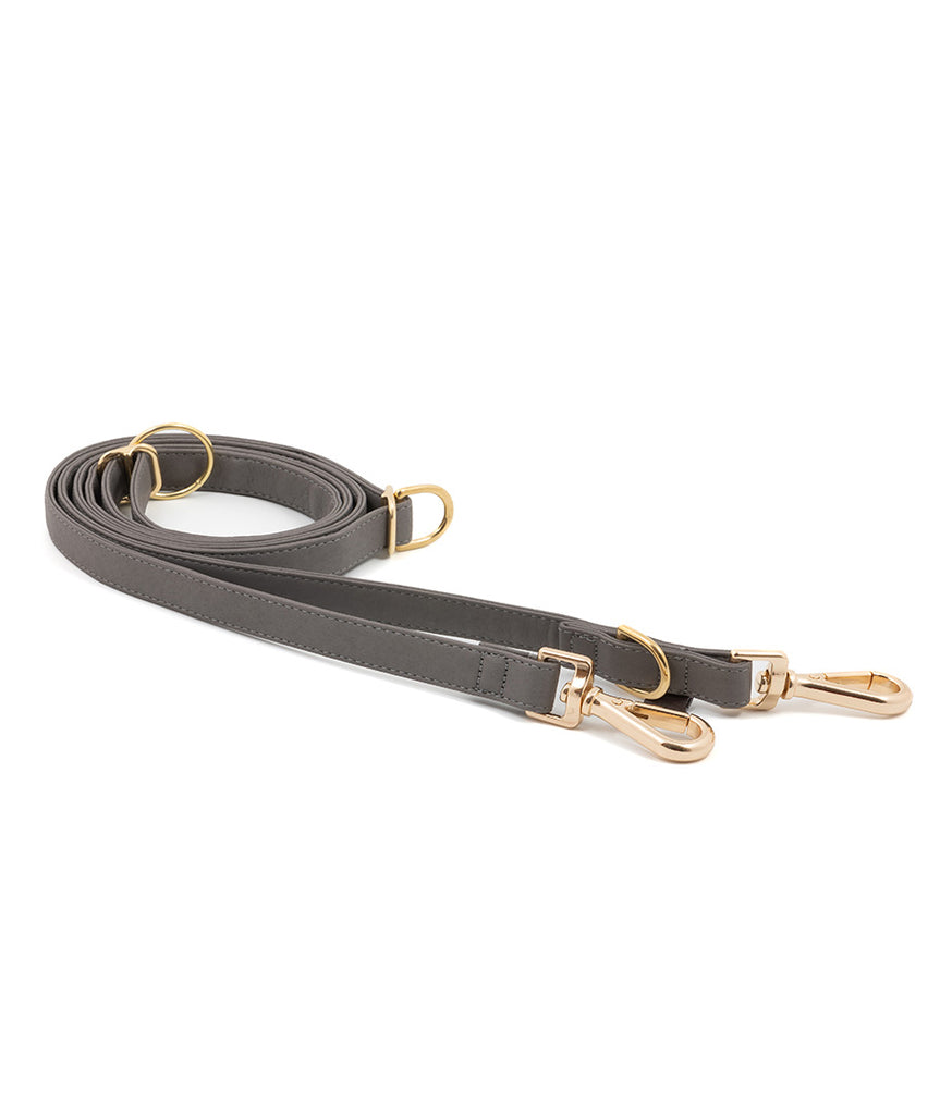 La correa para perro está realizada a mano en nuestro taller con un tejido que simula la piel realizado a partir del reciclaje de botellas PET dando como resultado un producto de alta calidad, muy resistente y de tacto suave. El nuevo mosquetón de la gamma Essence disponible en dorado o plateado está realizado en aleación de alta calidad para dar la mayor seguridad. El complemento perfecto a tu collar para lucir un look total.